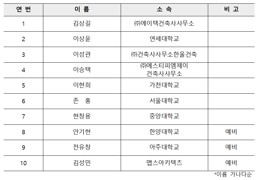 영등포구 통합 신청사 설계공모 심사위원 명단